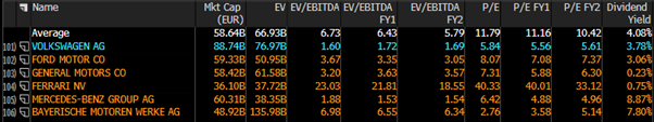 Prin comparație, Mercedes este evaluat la un raport estimat EV/EBITDA pentru 2023 de 1,54, BMW la 6,34 și Ferrari la 18,55.