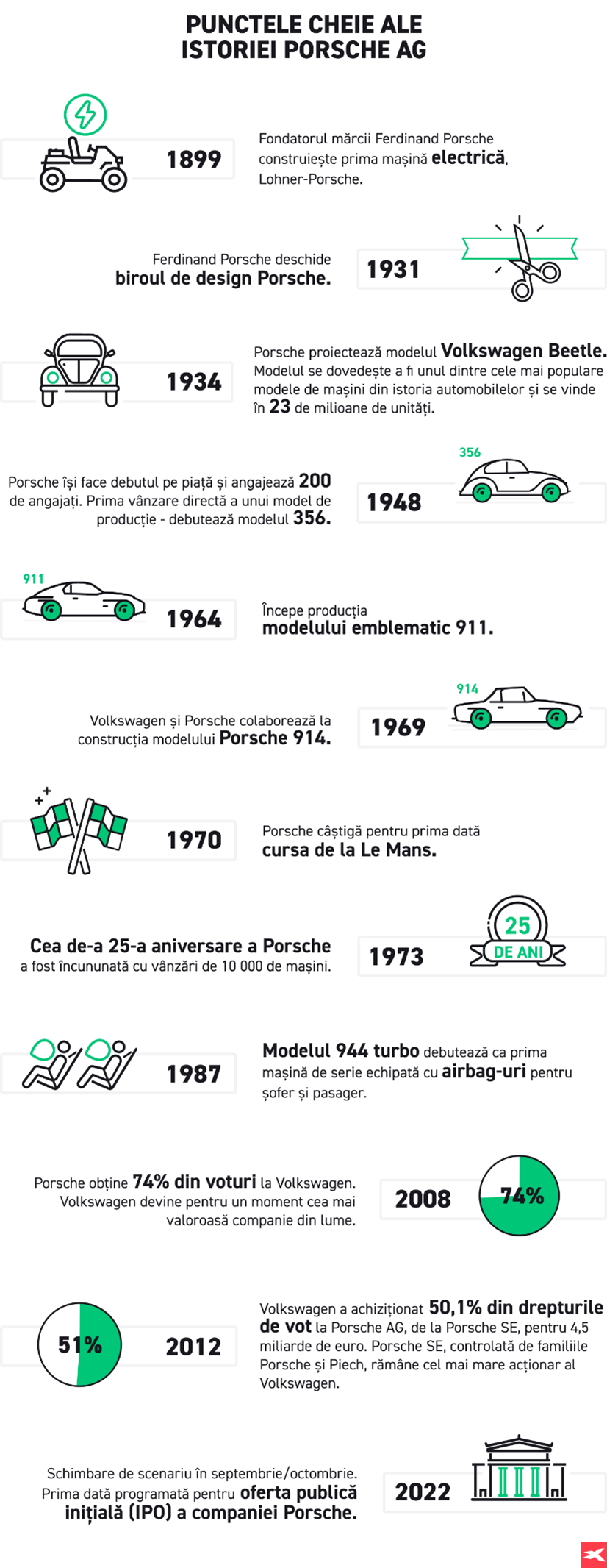 Mai jos este un grafic care arată cele mai importante momente ale istoriei Porsche AG: