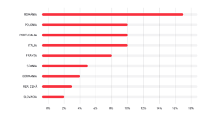 Cea mai mare pondere a fost înregistrată în România, unde procentul investitorilor în acțiuni este de până la 71%. În schimb, o pondere scăzută a investitorilor în acțiuni a fost observată în Germania (32,6%) și Italia (13,6%).