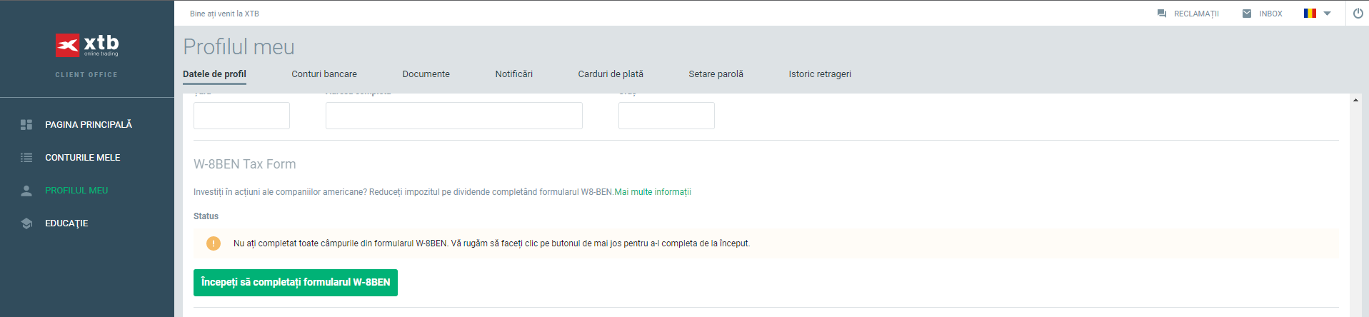 Mai jos vei găsi informații despre cum să completezi formularul W-8BEN la XTB pas cu pas: