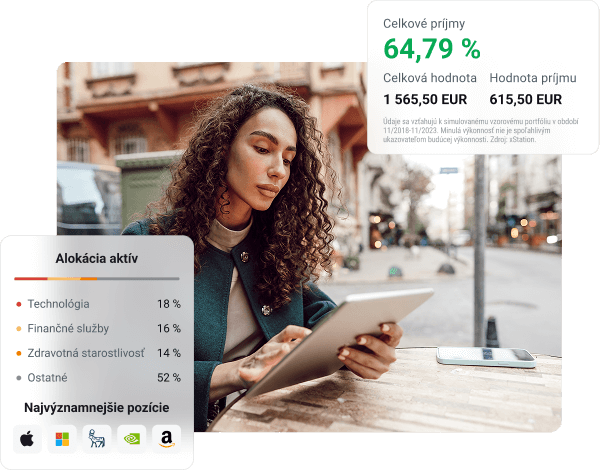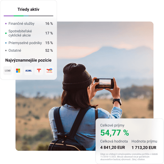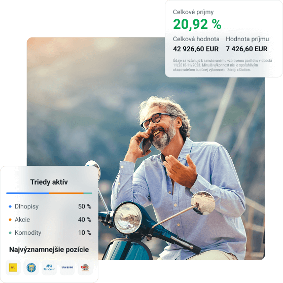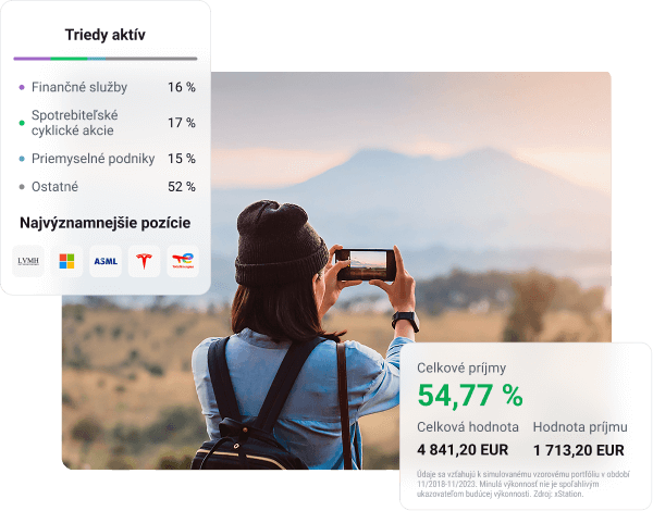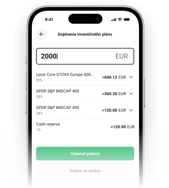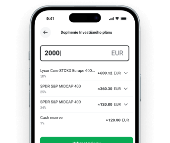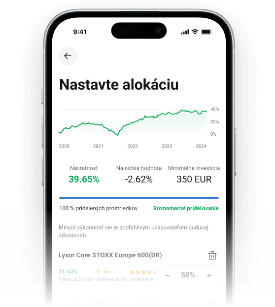 Intuitívne rozhranie Vám umožní jednoducho zostaviť plán a investovať akúkoľvek čiastku už od 15 eur. Finančné nástroje, ktoré ponúkame, sú rizikové. Investujte zodpovedne.