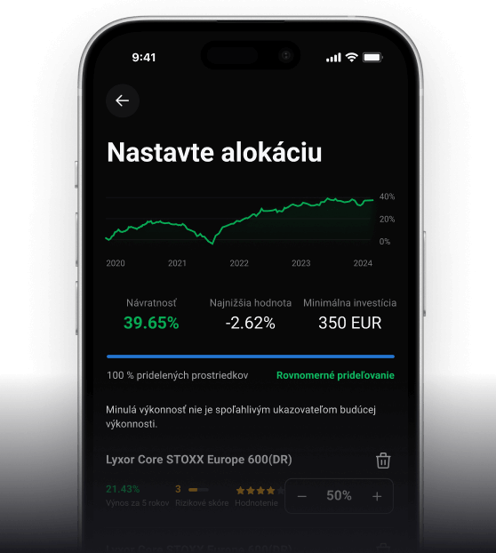 Objavte šikovnejší spôsob pasívneho investovania do ETF. Intuitívne rozhranie Vám umožní jednoducho zostaviť vlastný Investičný plán a automatické platby Vám umožnia jeho pravidelné financovanie.