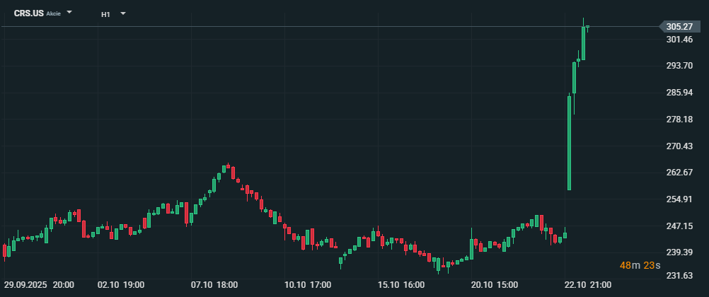 Akcie spoločnosti Carpenter Technology Corporation (NYSE: CRS) dnes prudko vzrástli približne o 24 % po zverejnení výborných hospodárskych výsledkov a zvýšenia prognózy rastu. Tento vývoj odráža zvýšený záujem investorov o výrobcov špecializovaných zliatin a materiálov využívaných v obrannom, leteckom a priemyselnom sektore.