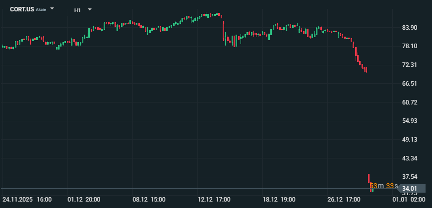 Akcie spoločnosti Corcept Therapeutics Incorporated (NASDAQ: CORT) dnes zaznamenali prudký prepad o viac ako 50 % po tom, čo americký Úrad pre kontrolu potravín a liečiv (FDA) vydal Complete Response Letter k žiadosti o schválenie hlavného experimentálneho lieku relacorilant. FDA uviedla, že predložené klinické údaje neboli dostatočné na preukázanie priaznivého pomeru prínosov a rizík, čo vyvolalo silný predajný tlak.