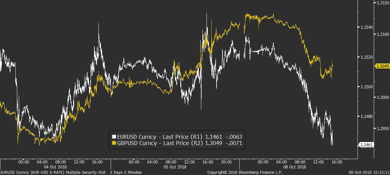 K růstu nervozity dnes ale přispěla i Itálie a vyjádření italského premiéra Salviniho, podle kterého jsou skutečným nepřítelem Evropy šéf Evropské komise Juncker a evropský komisař pro daně a finanční záležitosti Moscovici. Salvini to řekl na schůzce s Marine Le Penovou, když reagoval na snahu Bruselu bránit Itálii a v navyšování deficitu a ve fiskální expanzi.