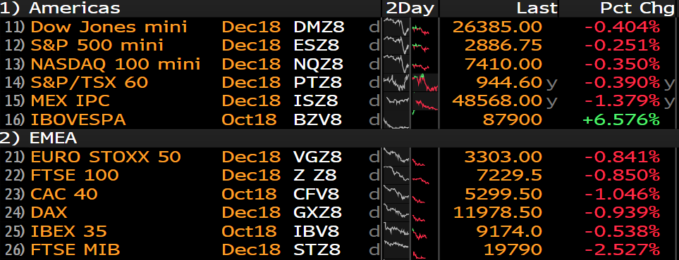 Dnešní seance je bez klíčových dat, takže i po otevření Ameriky bude dění na trzích v režii aktuálního sentimentu. V USA je svátek a americký trh s dluhopisy je dnes zavřený. Akciové trhy ale otevřou, takže prodejnímu tlaku zatím nemusí být konec, což potvrzují i americké futures, které signalizují open půl procenta pod svým pátečním close.
