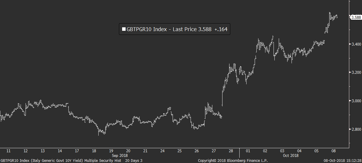 Italské bondy v reakci na jeho slova začaly znovu ztrácet, což poslalo desetileté výnosy výše o 18bp. až na 3,6 %.
