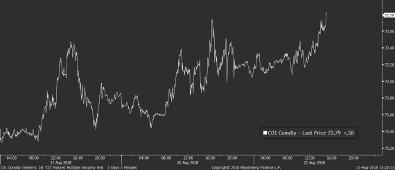 Makrokalendář je dnes kompletně bez dat, takže další vývoj na trzích zůstává v režii politických rizik. Pozor především na případné další výroky amerického prezidenta, který může mít co říct nejen k dolaru, ale také k případným tureckým sankcím a čínským clům.