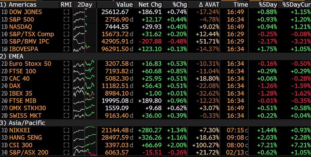 Akcie pokračujú v raste. Tento krát k tomu prispel optimizmus ohľadom obchodnej dohody medzi USA a Čínou, za ktorým stojí: a) Trumpovo vyjadrenie, že deadline na dohodu sa môže posunúť z 2. marca, pokiaľ bude v rokovaniach badať pokrok; b) správa, že na rokovania do USA príde aj Čínsky prezident Xi, čo má potenciál priniesť pokrok. Ďalším pozitívnym faktorom bolo Trumpovo vyhlásenie, že nepredpokladá ďalší shutdown v USA. V neposlednom rade trhy naďalej ťažia z holubičích vyjadrení popredných centrálnych bánk na čele s FEDom. Hlavné indexy sa popoludní obchodujú so ziskami okolo 0,5%.
