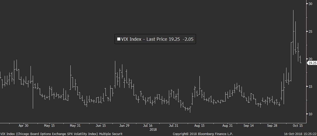 …ale také na samotné úrovni rizikových přirážek, takže se dnes VIX propadá zpět pod 20b. Odvážlivci, kteří minulý týden shortovali VIX si tedy mohou začít mnout ruce.