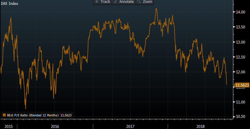 Je však potrebné dodať, že žiadne efekty sa zatiaľ citeľnejšie nezhmotnili. Očakávania ziskov spoločností teda výraznejšie neustúpili. Akcie teda v porovnaní s očakávanými ziskami zlacneli. Index S&P 500 aj index DAX sú aktuálne v porovnaní s očakávanými ziskami v najbližších 12 mesiacoch najlacnejšie od roku 2016.