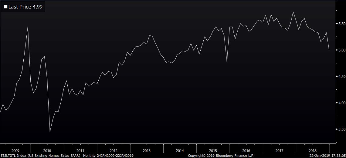 Predaje domov na americkom sekundárnom trhu zaznamenali ďalší prepad, medzimesačne o silných 6,4% na 4,99 mil. anualizovane (čakal sa pokles na 5,27 mil.), čo predstavuje najnižšiu úroveň od roku 2015. Je to ďalšie potvrdenie trendu spomalenia na americkom trhu s bývaním, za ktorým stoja predovšetkým vyššie sadzby FEDu. Hoci z dlhodobého pohľadu je to stále solídne číslo, z nášho pohľadu to znamená ďalšiu červenú pre zvyšovanie úrokových sadzieb. Pre dolár je to zlá správa, ale len páre s bezpečnými prístavmi typu JPY, pretože odloženie zvyšovania sadzieb čaká aj ďalšie ekonomiky. Akcie na toto číslo reagovali spočiatku len obmedzene, slabšie predaje domov však mohli prispieť k neskoršiemu poklesu akcií.
