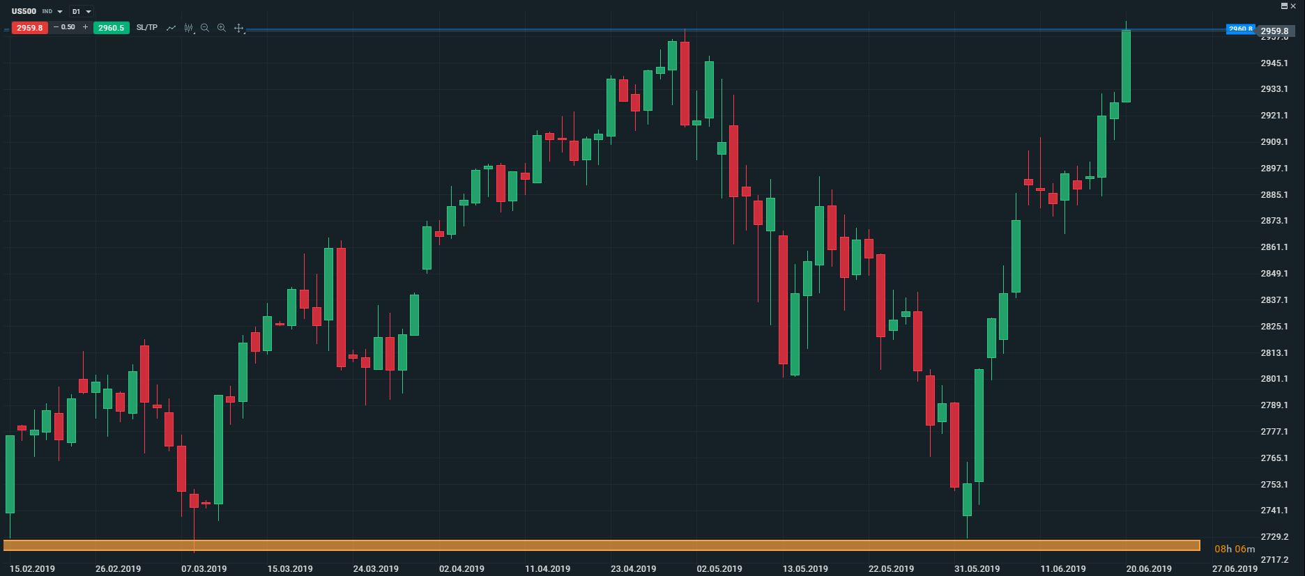 Americký akciový index US500 sa dnes dostal na historicky najvyššie úrovne. Zdroj: xStation5