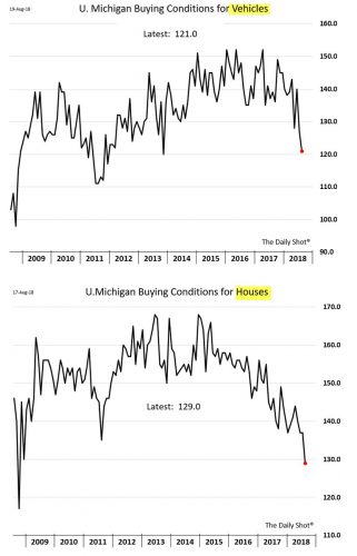 Vyzerá to však, že sa nejedná o jednorazové slabšie číslo. Detailné dáta z posledného prieskumu spotrebiteľskej dôvery z dielne University of Michigan totiž ukázali, že podľa Američanom je aktuálne najhoršie obdobie na kúpu domu krízy. A nemusí to byť len úrokovými sadzbami. Takisto prudko klesá aj index ideálnej doby na kúpu automobilu. Ten je aktuálne najnižšie od roku 2013.