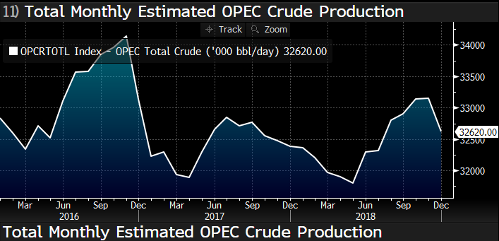 Ropě přitom velmi pomohla hlavně překvapivá zpráva o produkci OPECu, která klesla už v prosinci, a to nejvíce za poslední dva roky (-530 tis. bpd), když jen Saúdská Arábie snížila produkci o 420 tis. bpd.