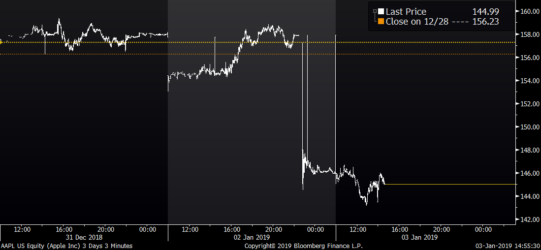 Po divoké včerejší noci, která vedle snížení výhledu pro tržby Applu přinesla také flash-crash na AUD, se dnes situace postupně stabilizuje. Akcie ale zůstávají pod tlakem, což platí hlavně o USA, kde dnes futures na S&P500 signalizují zahájení obchodování procento pod včerejším close, zatímco futures na NASDAQ klesají o 1,7 %. Na vině je hlavně výprodej na Applu, který se díky včerejším zprávám o snížení produkce prodává v pre-marketu mírně na 145 USD a tedy se ztrátou 8 % proti včerejšímu close.