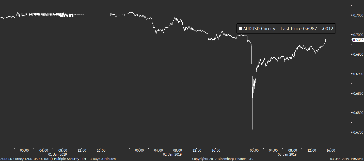 Apple jako důvod snížení výhledu citoval hlavně nižší poptávku z Číny, což celou situaci na trzích ještě více zhoršuje. Je to totiž právě Čína a její ekonomické zpomalení, které v poslední době investory čím dál více straší, a to zejména po nedávném zveřejnění dalších slabých výsledků PMI. Na FX to tak v noci ze včerejška na dnešek schytal hlavně AUD, který už ale od rána téměř veškeré své ztráty dokázal zlikvidovat.