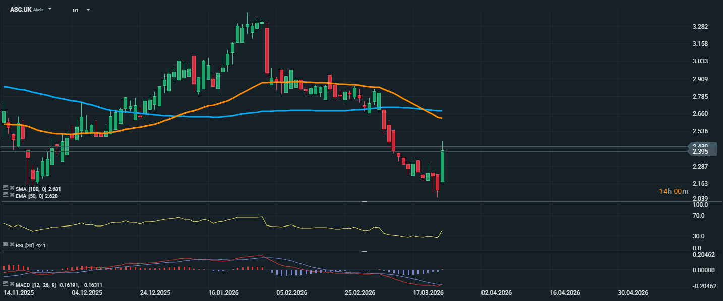 Z technického pohľadu bude teraz dôležité, či sa Asosu podarí udržať nad oblasťou okolo 2,30–2,40 GBP. Ak áno, titul by mohol skúsiť rast smerom k najbližšej rezistencii v pásme 2,53 GBP, prípadne vyššie k EMA 50. Ak by však súčasný odraz rýchlo zlyhal, trh sa môže znovu vrátiť k minimám v blízkosti 2,16 GBP.