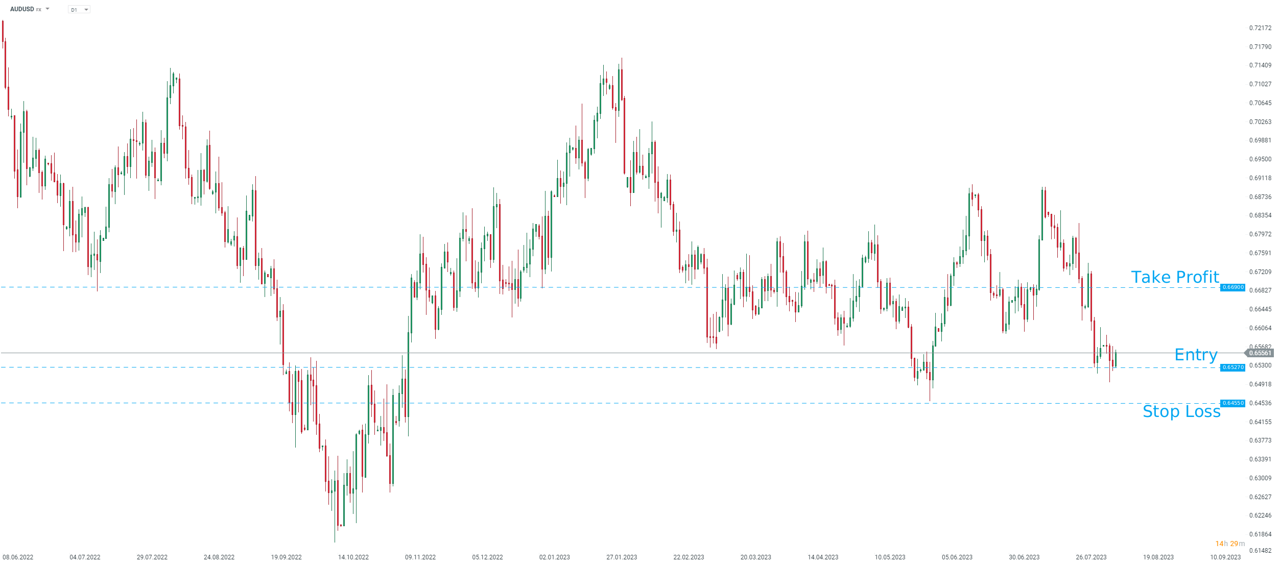 IFR odporúča zaujať dlhú pozíciu na AUDUSD za trhovú cenu s cieľom 0,6690 a stop loss príkazom na úrovni 0,6455. Zdroj: xStation5