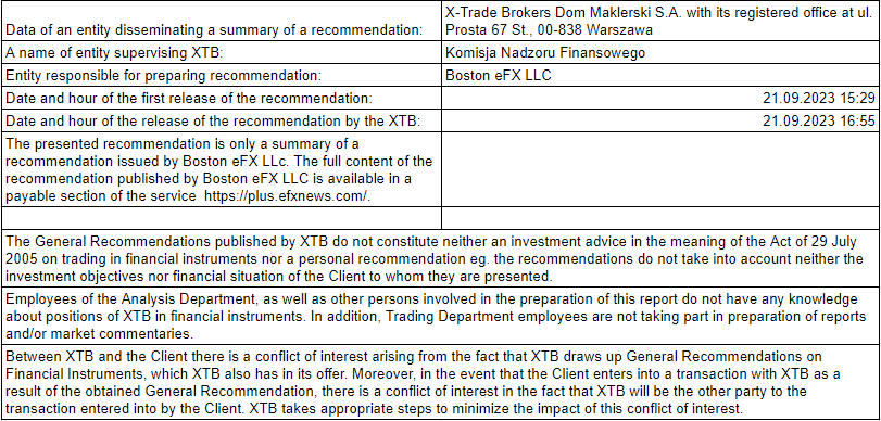 Tento materiál je marketingovou komunikáciou v zmysle čl. 24 ods. 3 smernice Európskeho parlamentu a Rady 2014/65/EÚ z 15. mája 2014 o trhoch s finančnými nástrojmi, ktorou sa mení smernica 2002/92/ES a smernica 2011/61/EÚ (MiFID II). Marketingová komunikácia nie je investičným odporúčaním ani informáciou odporúčajúcou alebo navrhujúcou investičnú stratégiu v zmysle nariadenia Európskeho parlamentu a Rady (EÚ) č. 596/2014 zo 16. apríla 2014 o zneužívaní trhu (nariadenie o zneužívaní trhu) a o zrušení smernice Európskeho parlamentu a Rady 2003/6/ES a smerníc Komisie 2003/124/ES, 2003/125/ES a 2004/72/ES a delegovaného nariadenia Komisie (EÚ) 2016/958 z 9. marca 2016, ktorým sa dopĺňa nariadenie Európskeho parlamentu a Rady (EÚ) č. 596/2014, pokiaľ ide o regulačné technické predpisy upravujúce technické opatrenia na objektívnu prezentáciu investičných odporúčaní alebo iných informácií, ktorými sa odporúča alebo navrhuje investičná stratégia, a na zverejňovanie osobitných záujmov alebo uvádzanie konfliktov záujmov v zmysle zákona č. 566/2001 Z. z. o cenných papieroch a investičných službách. Marketingová komunikácia je pripravená s najvyššou starostlivosťou, objektivitou, prezentuje fakty známe autorovi k dátumu prípravy a neobsahuje žiadne hodnotiace prvky. Marketingová komunikácia je pripravená bez zohľadnenia potrieb klienta, jeho individuálnej finančnej situácie a nijakým spôsobom nepredstavuje investičnú stratégiu. Marketingová komunikácia nepredstavuje ponuku na predaj, ponuku, predplatné, výzvu na nákup, reklamu alebo propagáciu akýchkoľvek finančných nástrojov. XTB S.A. organizačná zložka nezodpovedá za žiadne kroky alebo opomenutia klienta, najmä za nadobudnutie alebo predaj finančných nástrojov. XTB nezodpovedá za žiadnu stratu alebo škodu, vrátane, bez obmedzenia, akejkoľvek straty, ktorá môže vzniknúť priamo alebo nepriamo, spôsobená na základe informácií obsiahnutých v tejto marketingovej komunikácii. V prípade, že marketingová komunikácia obsahuje akékoľvek informácie o akýchkoľvek výsledkoch týkajúcich sa finančných nástrojov v nej uvedených, nepredstavujú žiadnu záruku ani prognózu budúcich výsledkov. Minulá výkonnosť nemusí nevyhnutne naznačovať budúce výsledky a každá osoba konajúca na základe týchto informácií tak robí výlučne na vlastné riziko.