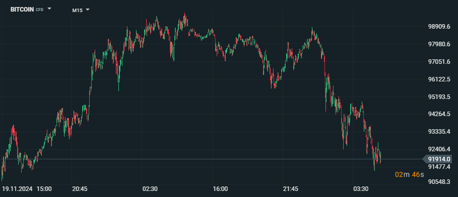 Bitcoin (BTC-USD) zažíva najdlhší pokles od víťazstva Donalda Trumpa vo voľbách. Po neúspešnom pokuse prekročiť hranicu $100,000 stratil trh časť svojej špekulatívnej eufórie, ktorú vyvolal prísľub priaznivej regulácie kryptomien zo strany prezidenta. Počas štyroch dní klesla cena bitcoinu o 8 % na $91,615 (k 6:42 newyorského času).