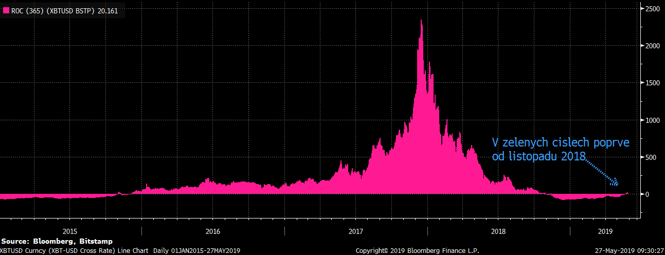 Jedné zajímavosti jsme se ale přeci jen dočkali. Bitcoin se díky silnému růstu z posledních týdnů na meziroční bázi dostává konečně zpět do zelených čísel. Zisky na meziroční bázi nejsou nijak vysoké a dosahují sotva pár procent. Děje se tak ale poprvé od listopadu 2018, což pro řadu spekulantů může být dalším potvrzením toho, že je medvědí trh skutečně u konce.