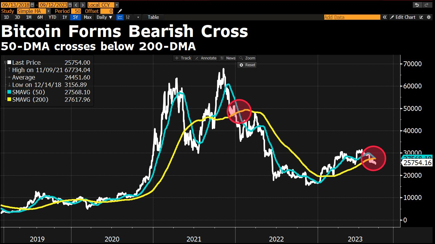 - Potenciálna formácia 'death cross' na bitcoin obmedzuje chuť k riziku a môže predznamenávať predĺžené obdobie slabosti - avšak v skutočnosti sa tento indikátor často ukáže ako 'zaostávajúce' a vyskytuje sa, keď je trh prepredaný a ceny sú nízke;