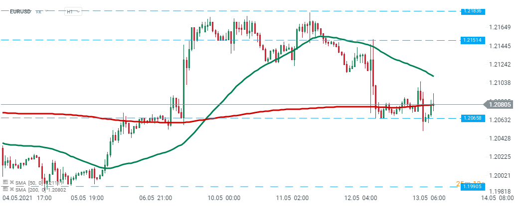 EURUSD nezaznamenal významnou reakci na data. Pár se pohybuje v okolí úrovně 1,2080 level. Zdroj: xStation5