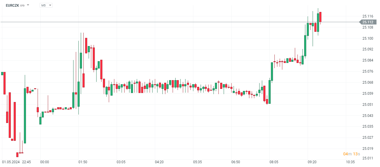 Koruna v reakcii mierne oslabila voči euru o 0,03 %.