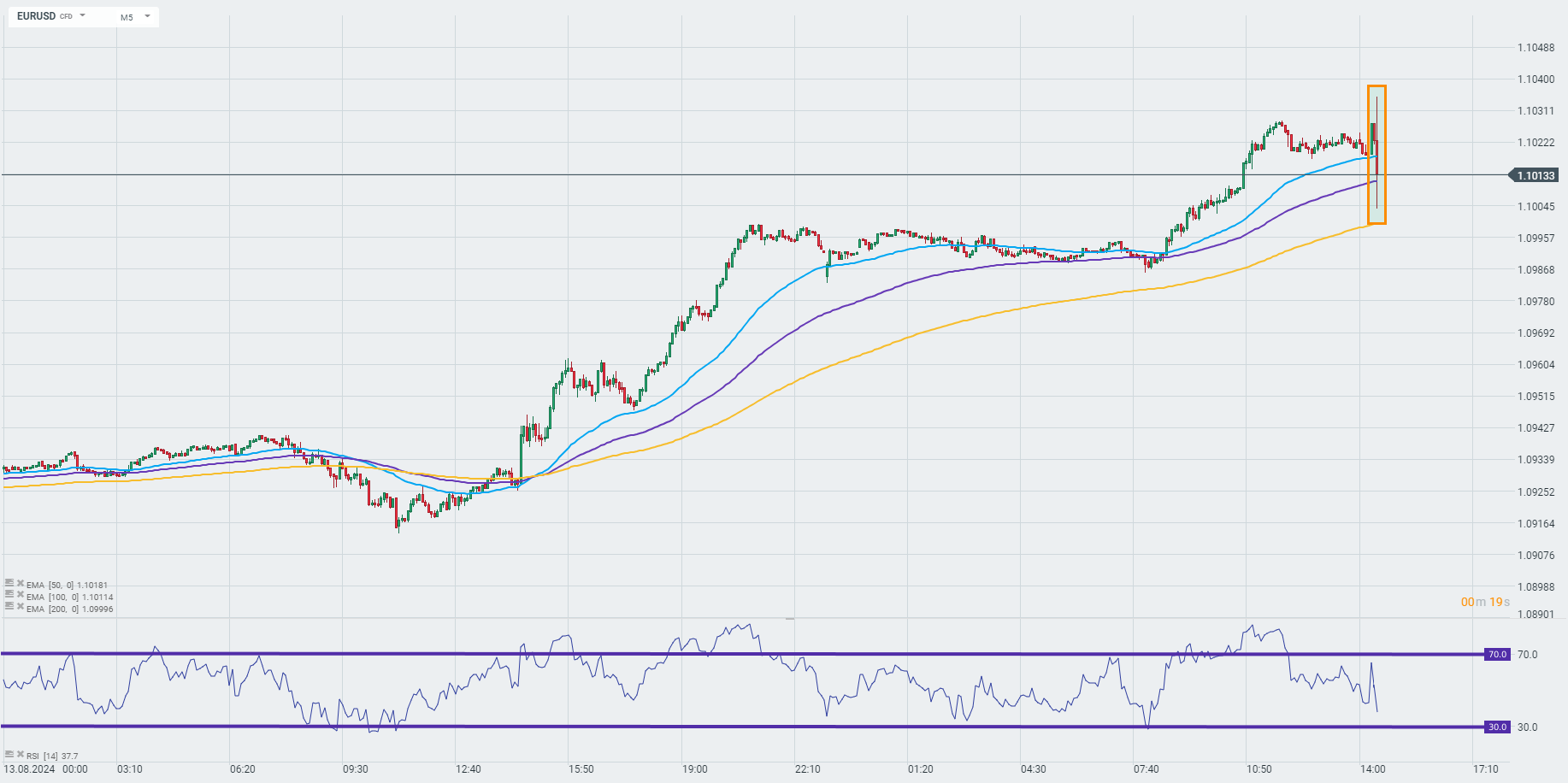 Napriek počiatočnému nárastu zaznamenanému na páre EURUSD sa tieto pohyby už obrátili. Mierne prekvapenie smerom nadol nedokázalo presvedčiť investorov, že inflačné tlaky v americkej ekonomike slabnú.