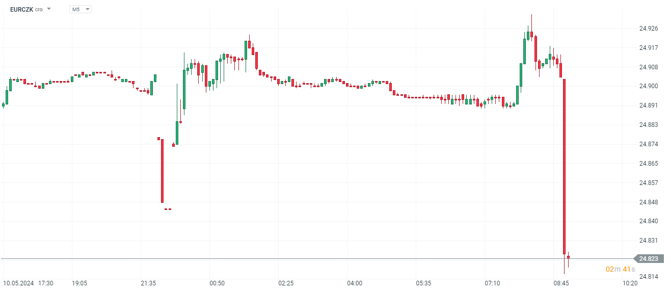 Koruna reagovala posilnením voči euru o 0,3 %.