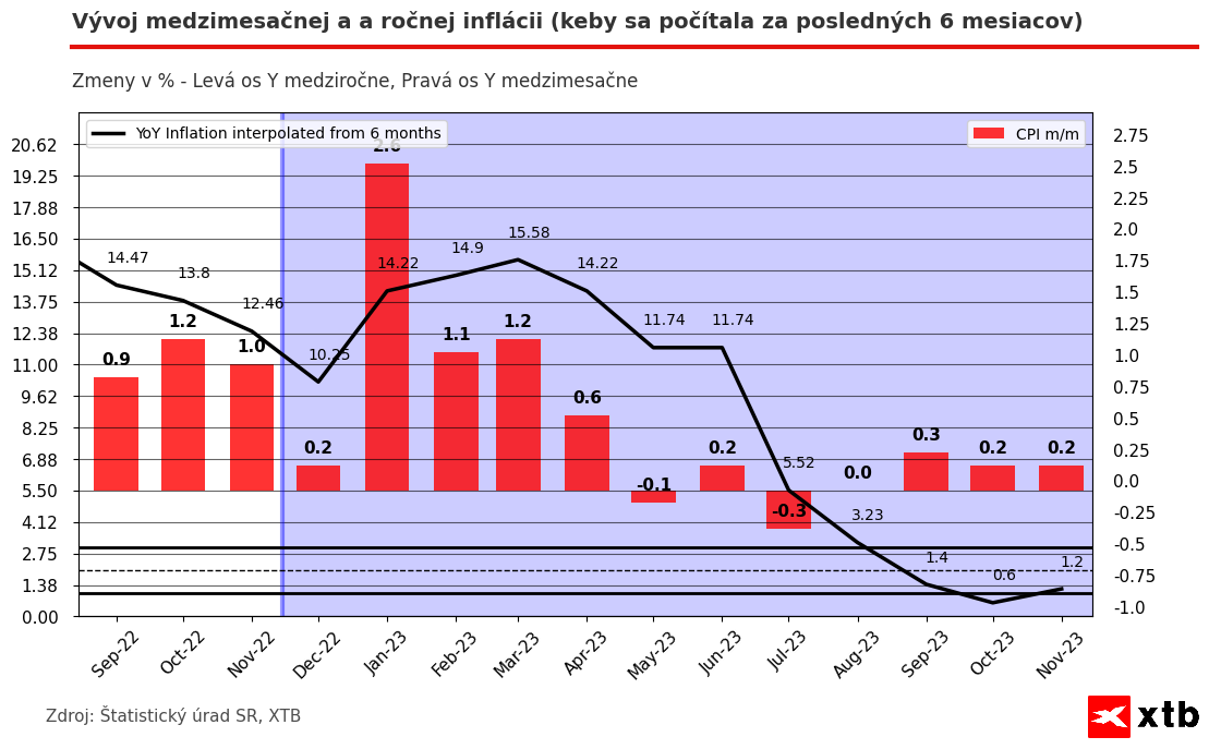 V posledných 8 mesiachoch sa nám medzimesačné prírastky cien normalizujú, čo naznačuje možnú výhru nad inflačným vývojom. Zdroj: Štatistický úrad SR, XTB