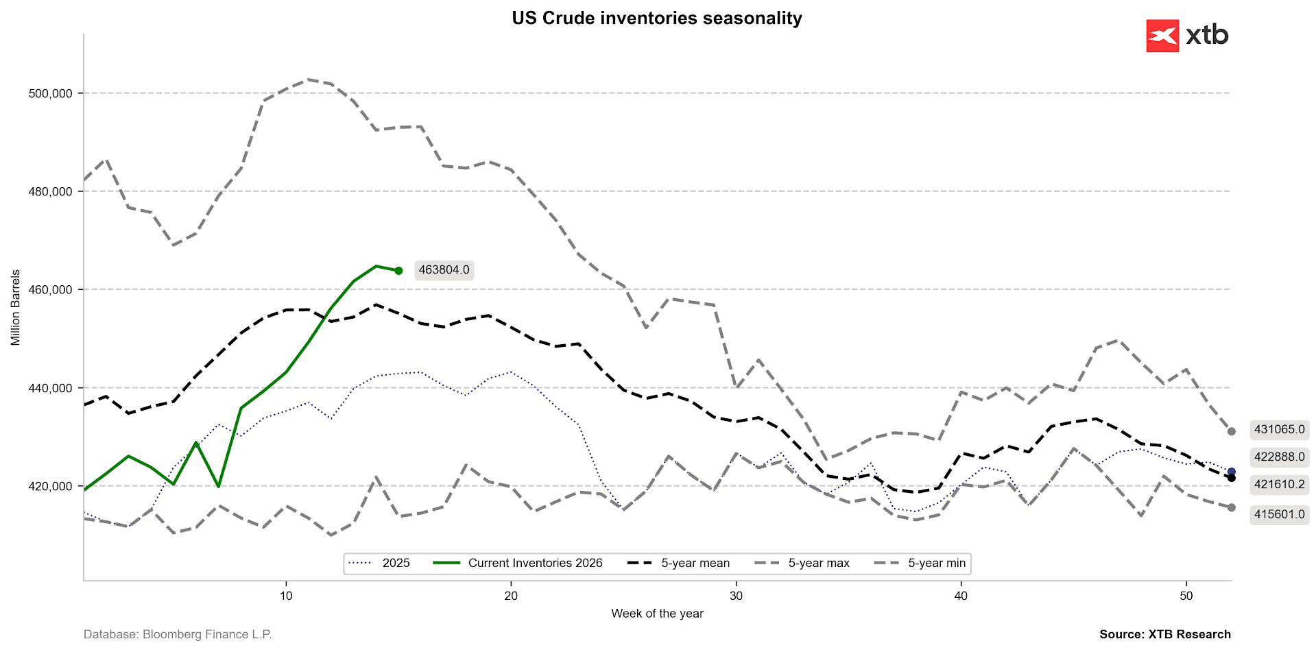 - Zásoby ropy: pokles o 0,9 milióna barelov na 463,8 milióna barelov, čo trh prekvapilo, pretože sa očakával rast zásob.