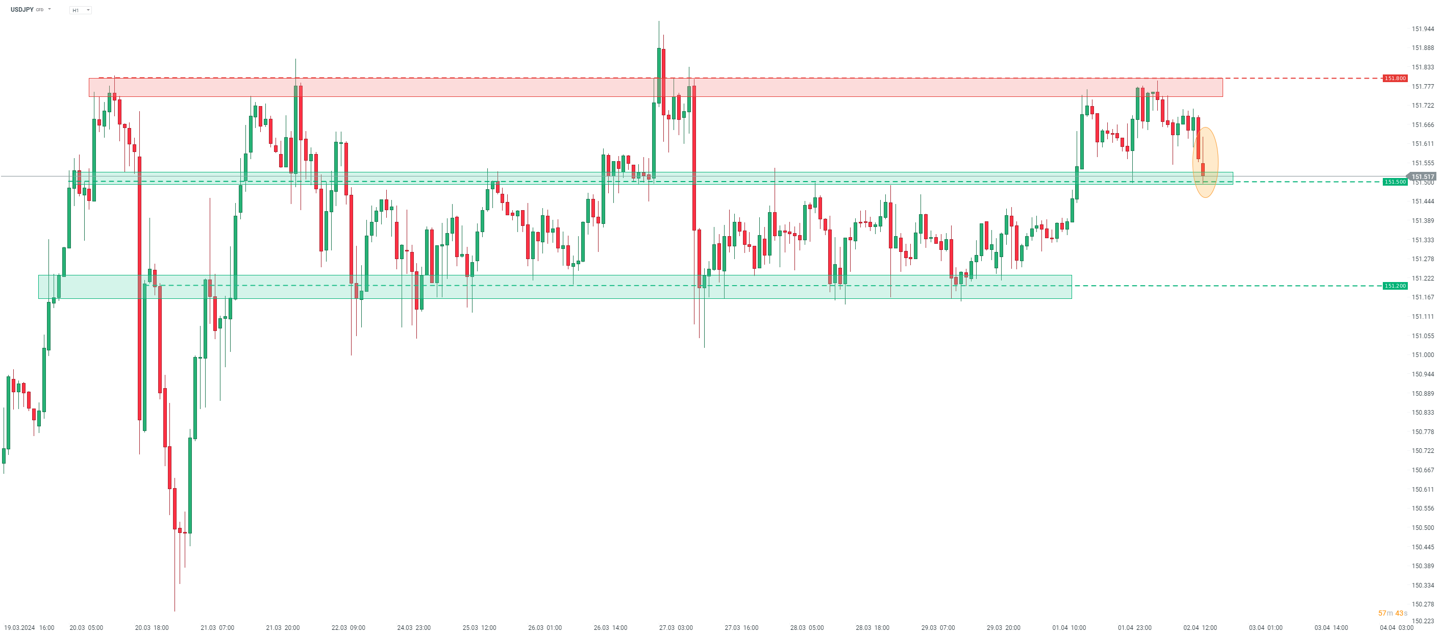 Aktuálna správa ukázala vyššie ako očakávané továrenské objednávky, ako aj objednávky tovarov dlhodobej spotreby, ktoré boli revidované mierne nižšie. Údaje JOLTS boli viac-menej v súlade s očakávaniami trhu. USD sa po zverejnení posunul nižšie, pričom USDJPY testoval zónu podpory 151,50.