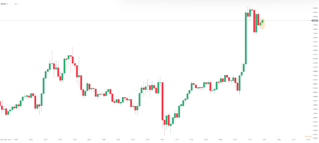 EURUSD po zverejnení lepších než očakávaných údajov o trhu s bývaním v USA za jún nezaznamenal takmer žiadny pohyb. Zdroj: xStation5