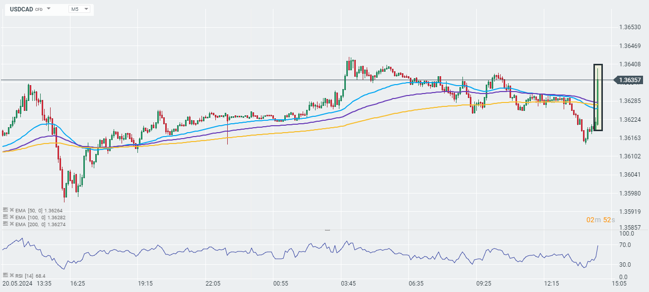 Zverejnená správa sa približuje očakávaniam analytikov s miernym príklonom k holubičiemu prekvapeniu. Očakávania týkajúce sa zníženia úrokových sadzieb BoC by sa po tomto údaji teoreticky mohli zvýšiť.