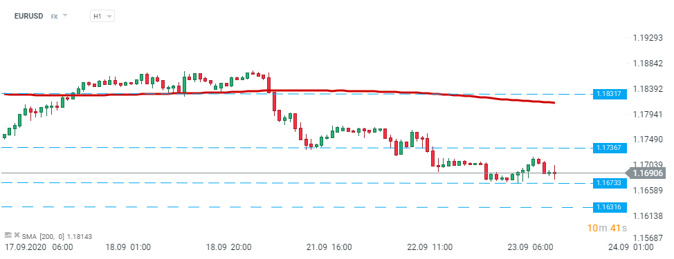 EURUSD zaznamenal relatívne malú reakciu na dnešné zverejnenie údajov. Najobľúbenejší menový pár sa naďalej obchodoval okolo úrovne 1,1690. Zdroj: xStation5