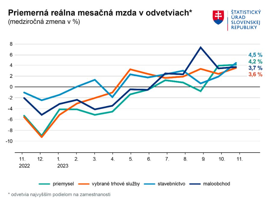 Rast nominálnych miezd bol natoľko vysoký, že opäť prekonal infláciu a na Slovensku tak reálne mzdy naďalej rastú.