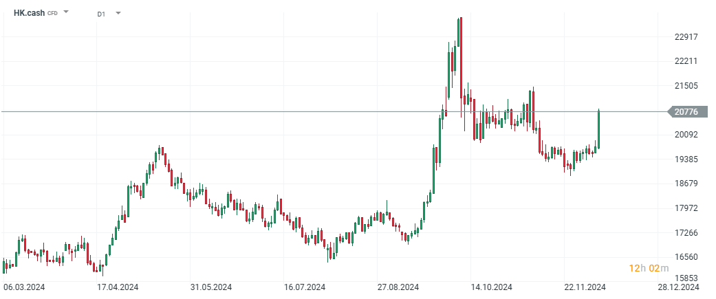 Index Hang Seng si dnes v reakcii na oznámené správy pripisuje viac ako 5 %. Zdroj: xStation5