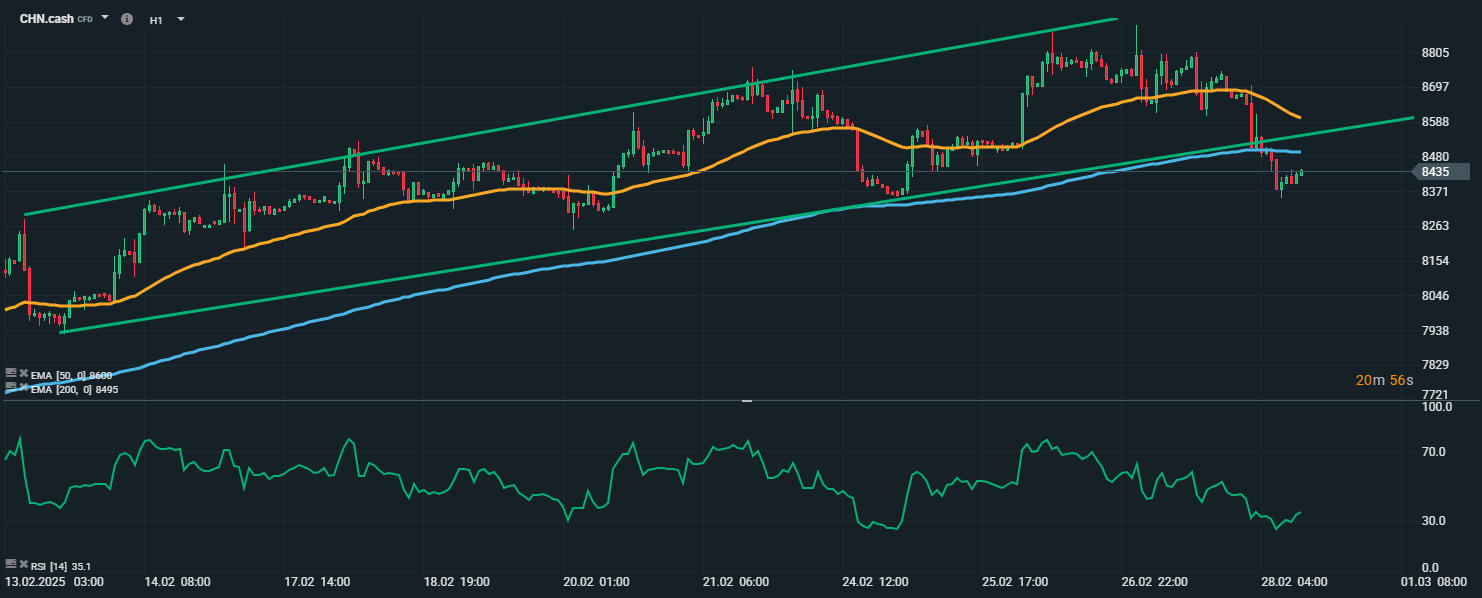 - Čínske akcie výrazne oslabili – index HSCEI (CHN.cash) klesol o 3 %.