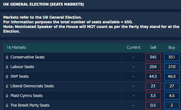Je důležité připomenout, že kvůli nastavení britského volebního systému může být velký rozdíl mezi podporou stran ve volbách a jejich získanému počtu mandátů. Dle odhadu bookmakerů se očekává, že by Konzervativci mohli získat 348 křesel. Pouze 326 křesel znamená parlamentní většinu. Zdroj: Sporting index