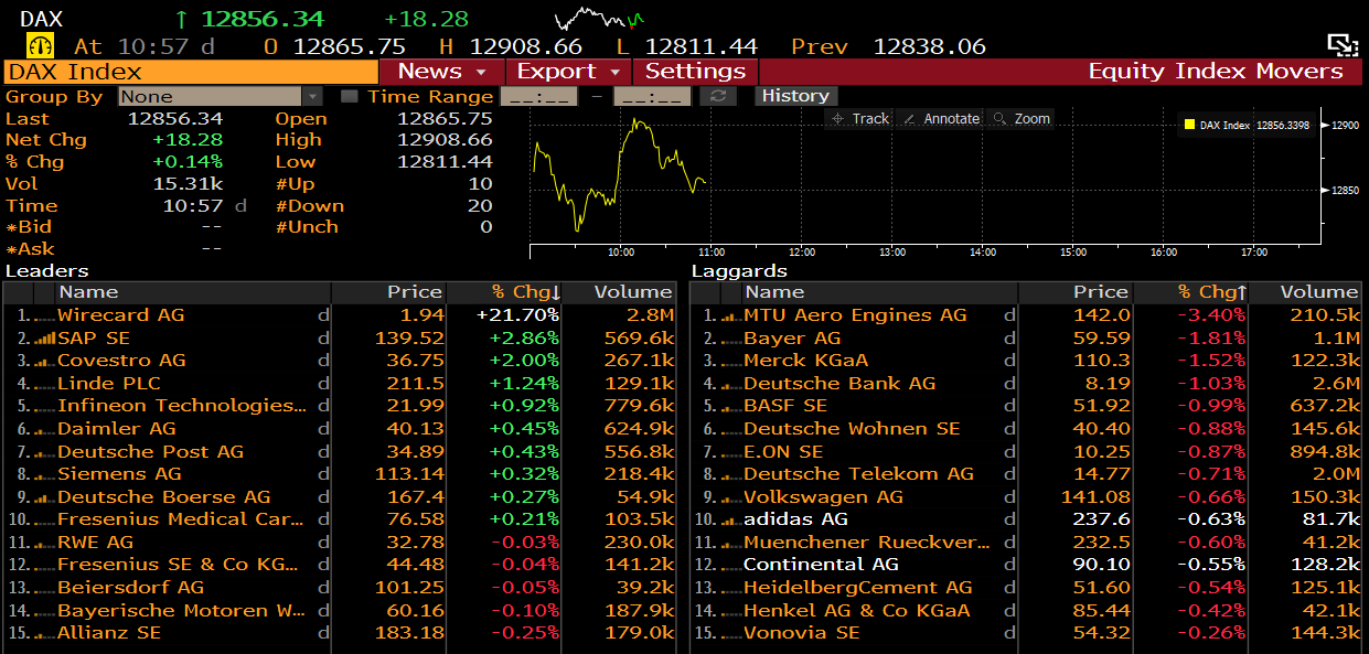 Společnosti indexu DAX v 10:57. Zdroj: Bloomberg