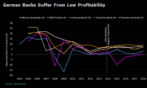 Nemecké banky majú ťažkosti dosahovať prosperitu v období nízkych úrokových sadzieb. Táto situácia je jedným z hlavných dôvodov, prečo chce ECB naviazať sadzby TLTRO na nezápornú úroveň. Problémy spoločnosti Deutsche Bank a Commerzbank sú dôležitejšie pre akcionárov, ako pre celú ekonomiku.
