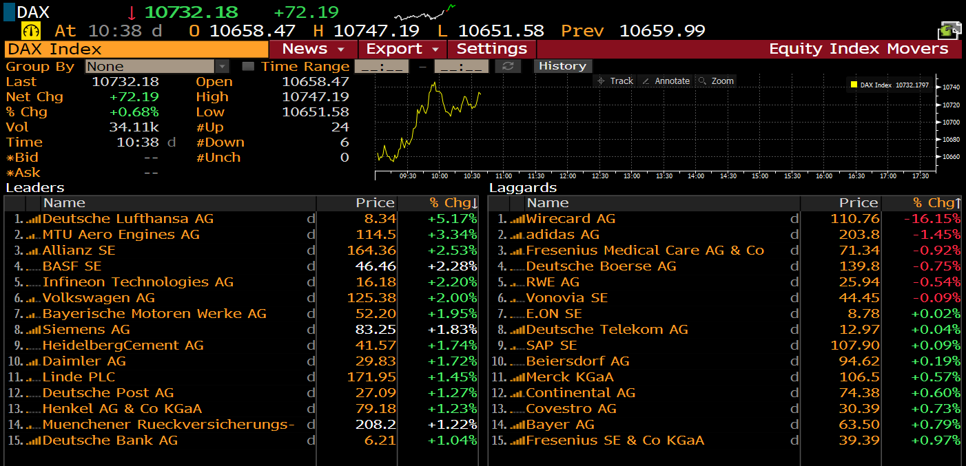 - Veľké pohyby akcií Wirecard (WDI.DE) a Lufthansa (LHA.DE)