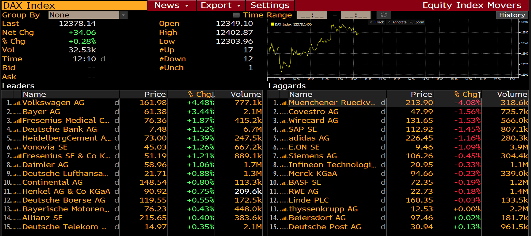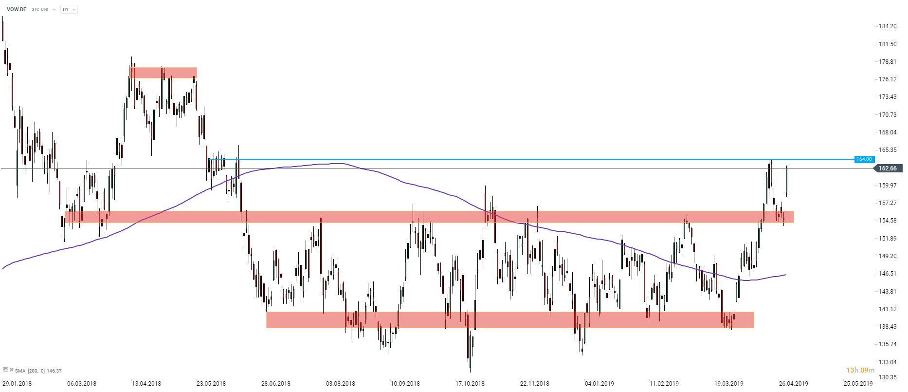 Nemecký automobilový sektor má sa sebou drsný rok, najmä vďaka obchodnému napätiu medzi dvoma najväčšími ekonomikami sveta. Zdá sa však, že začiatok roka 2019 bol na trhoch lepší, ako sa očakávalo. Spoločnosť Volkswagen (VOW.DE) dnes zverejnila hospodárske výsledky za prvý kvartál. Nemecká automobilka dosiahla tržby vo výške 60 miliárd eur, čo je o 2,5% viac ako odhady analytikov, zatiaľ čo EPS dosiahla na úrovni 7,366 EUR, oproti očakávaným 6,497 EUR. Dôležitejšie ale je, že spoločnosť sa rozhodla zvýšiť svoj celoročný cieľ. Volkswagen sa vyjadril, že je presvedčený o dosiahnutí týchto cieľov aj napriek globálnemu spomaleniu ekonomiky a rastúcim súdnym nákladom, v súvislosti s aférou Dieselgate. Akcie spoločnosti Volkswagen dosiahli najvyšší nárast z akciového indexu DAX, zatiaľ čo ostatné automobilky taktiež ťažia s optimizmu v rámci celého sektora.
