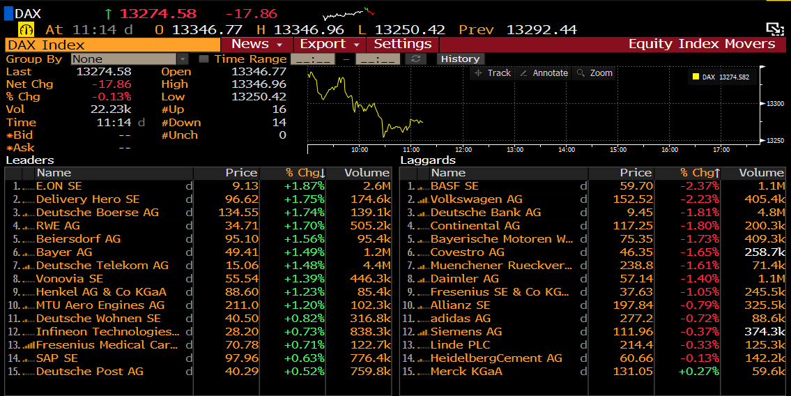 Vývoj akcií z indexu DAX. Zdroj: Bloomberg