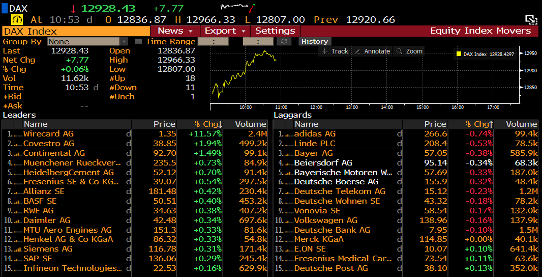 Společnosti DAXu v 10:53. Zdroj: Bloomberg