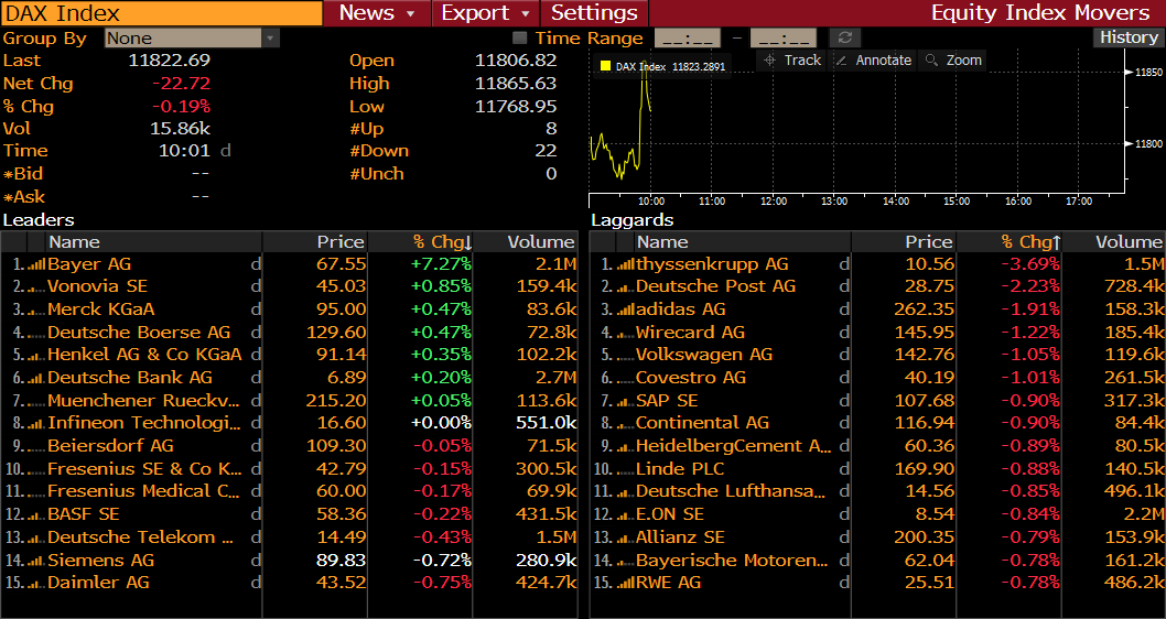 Vývoj akcií z indexu DAX. Zdroj: Bloomberg