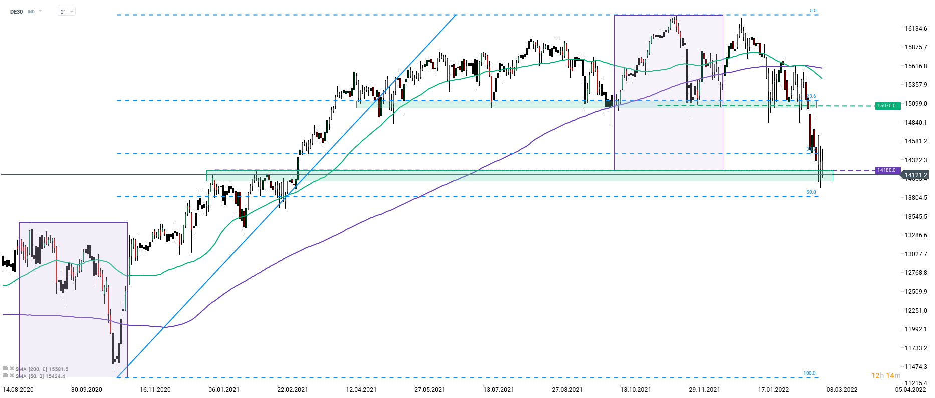 - DE30 testuje kľúčovú podporu pod hladinou 14 180 bodov