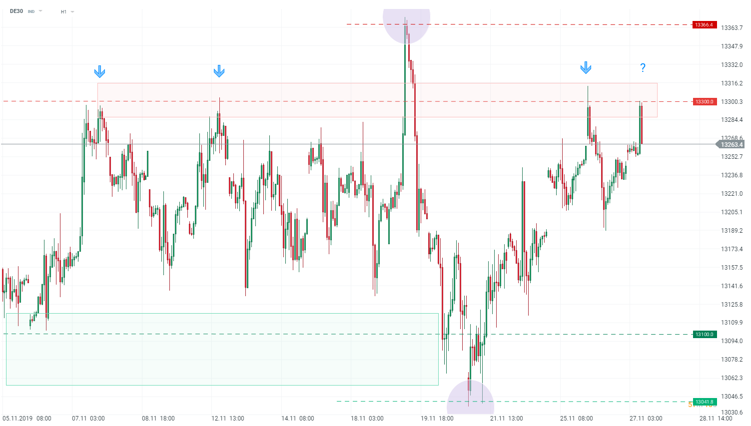 Středeční obchodování na německém DAXu začíná aktivně s býky u kormidla. Kupující opět zkoušejí překonat úroveň 13 300 bodů. Přes pokračování rally na Wall Street je DE30 "uvězněn" v relativně úzkém pásmu 13 100 - 13 300 bodů. Byli jsme už svědky jednoho neúspěšného průrazu a několika testů horní limity tohoto pásma. Jeden se udál včera a nakonec skončil odrazem na nižší úrovně. Z technického pohledu zvýšený počet opakovaných neúspěšných pokusů by mohl vyústit k výraznější korekci. Hlavní supporty, na které by se obchodníci měli zaměřit, jsou úrovně 13 100 a 13 040 bodů.